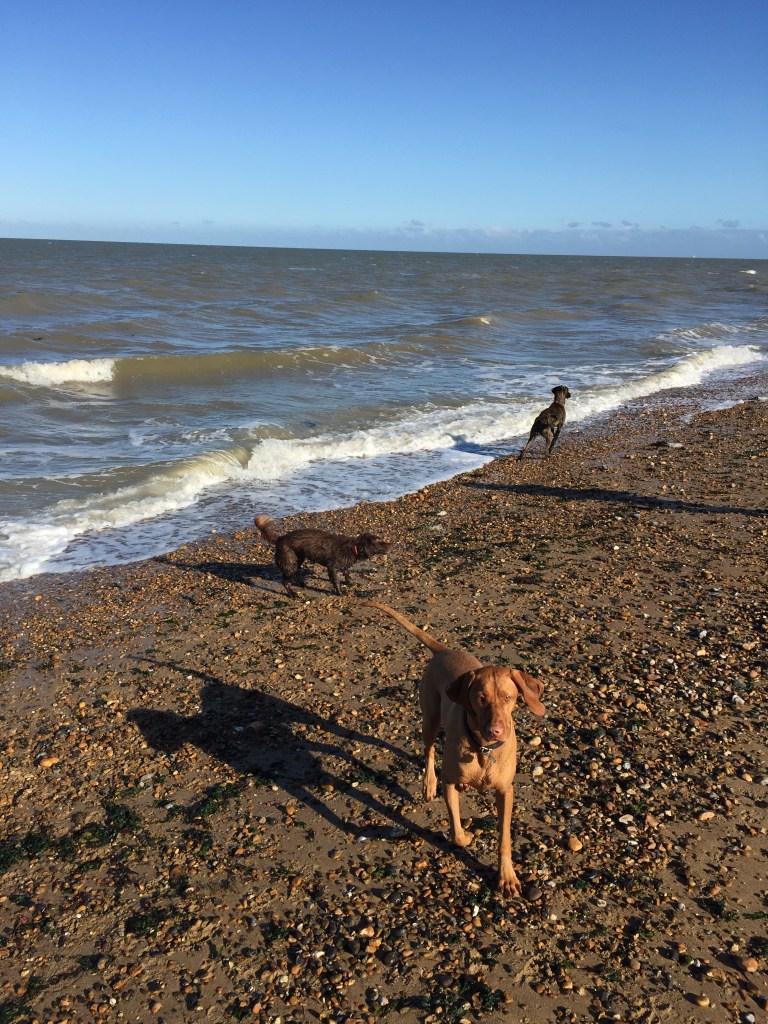Day at Herne Bay Happy dogs fab day out last Summer walking from Herne Bay to Reculver, great fish and chips after. Everyone’s wet and had great fun. Thanks Rita Locskai for coming (colleague and dog groomer and friend). Share this: Click to share on X (Opens in new window) X Click to share on Facebook (Opens in new window) Facebook Like Loading...