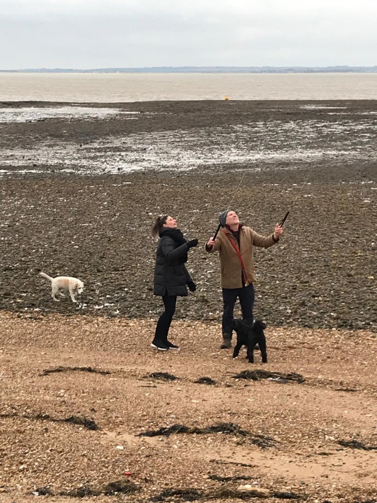 Me with the girls – happy day out with Rita Locskai and Hannah Williams – (Paws on Faws) – two fellow dog walkers. Guess what we had for lunch (Fish and Chips). Kite flying was not that successful – spent longer un knotting than flying. Doggy friends not in this picture – George, Panni and Bob