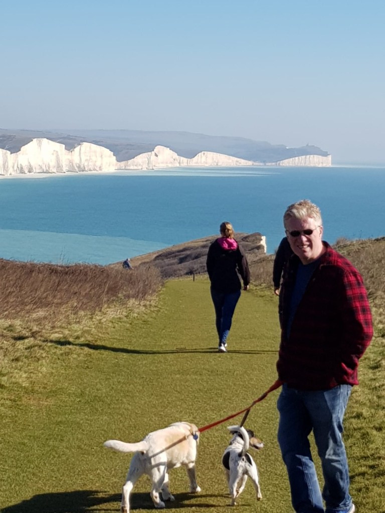 Usual gang, went for day out to visit Jaquie Orr at Light House Cafe September 2019. Had brunch at the Light House Cafe in Seaford, then mega walk down the beach and walked to Seven Sisters Country Park. Usual gang Rita my fellow human, doggy friends – Bob, George and Panni.