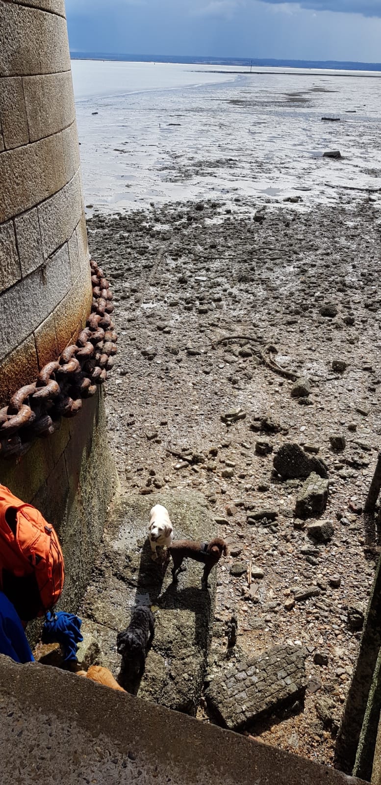 Quite afternoon, partner in crime Rita and I went to meet my brother at Grain. We all ended up very muddy and visited Grain Tower Battery Fort via the causeway. George, Oscar, Panni and Rufus waited while we looked around. All had fun. I had to lend my saddles to Rita. Lovely mud between toes (yuk). Dogs seemed not to sink, but I did!!!!